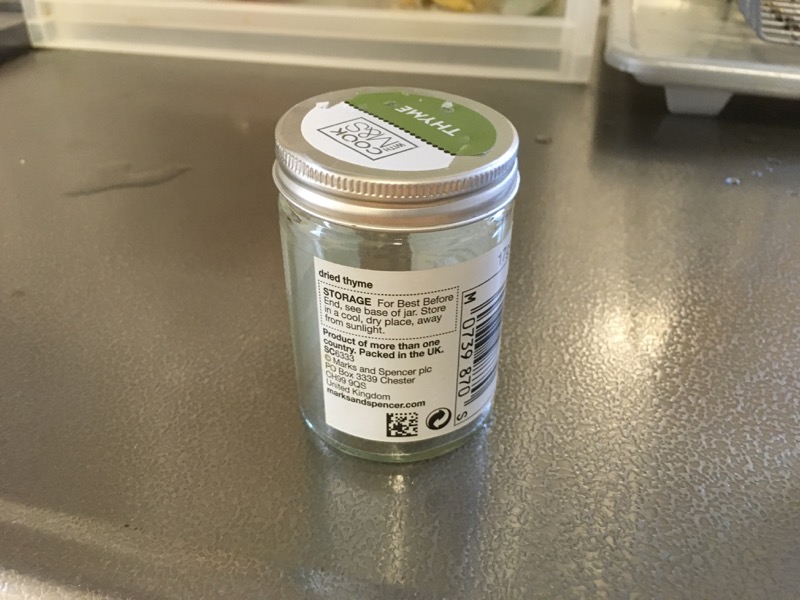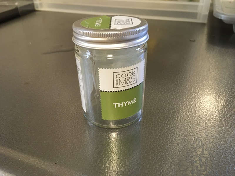 そのとき Marks & Spencer というスーパーで、thyme というハーブを買った。妻が日本で料理に使いたいということで。