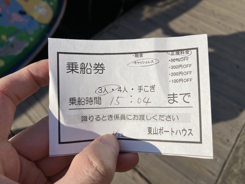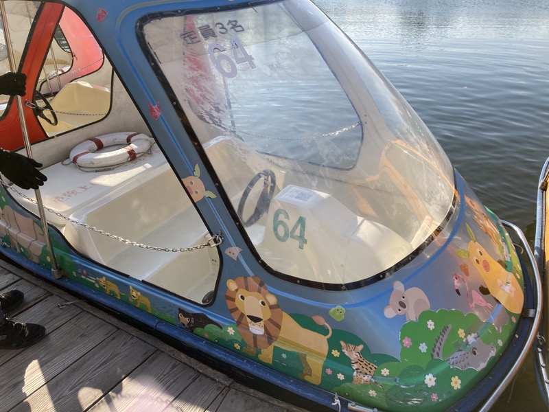 足漕ぎボートにも乗った。ひょっとするとこういうボートに乗るのは僕は初めてかもしれない。寒いせいか、他にボートに乗る人はいなかった。僕の体重側にボートがやや傾いていた。息子は足が届かないので僕が漕いでいたが、結構疲れる。30 分間乗れて、時間になったら自分で戻って来るスタイルだが、10 分ほどで息子は飽きたらしく、すぐに戻った。湖の上にいたカモみたいな鳥が、何度も潜るのを繰り返するを見るのは面白かった。