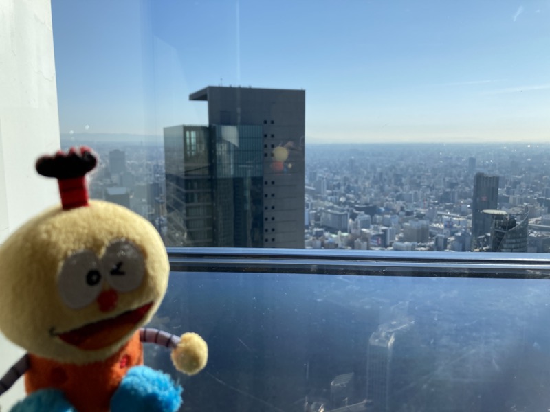 こういう高層階に登ったのは久しぶりだ。息子はこの高さは初めてのはず。下に見える小さい車を「エイッと潰せちゃいそうだね」と言っていた。息子はまだこの景色から建物を特定するのは難しいみたい。