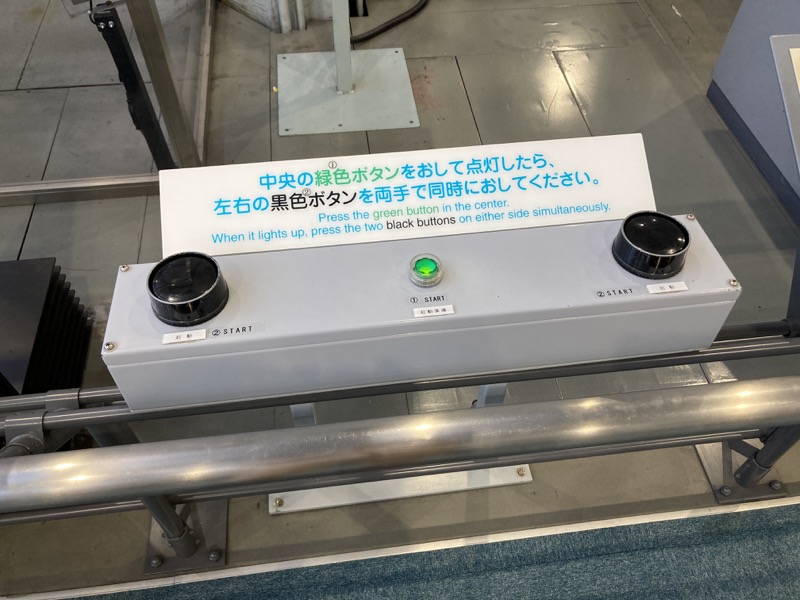 左右の起動ボタンを同時に押さないと動かないようになっている。間違って動作しないようにするためだろう。