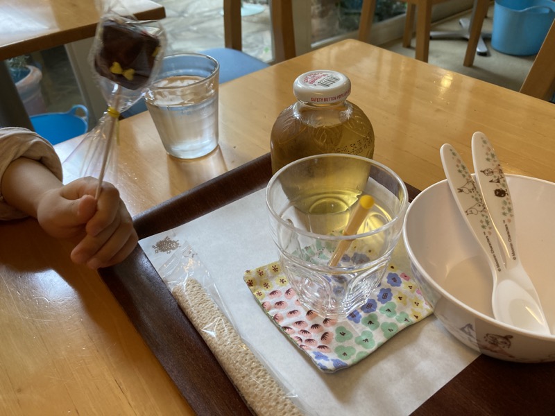 お店に入るとカウンターにケーキなどがあるが、メニューを渡されるので一旦席で選んだ。再びカウンターに戻って注文する。メニューは写真などがないので分かりにくいが(お店の前に置いてあるメニューもそういう感じ)、アフタヌーンティーセットみたいなのがあったのでそれと、紅茶、息子が欲しがったカウンターで見たチョコレートマシュマロを注文した。支払いは現金のみ。
