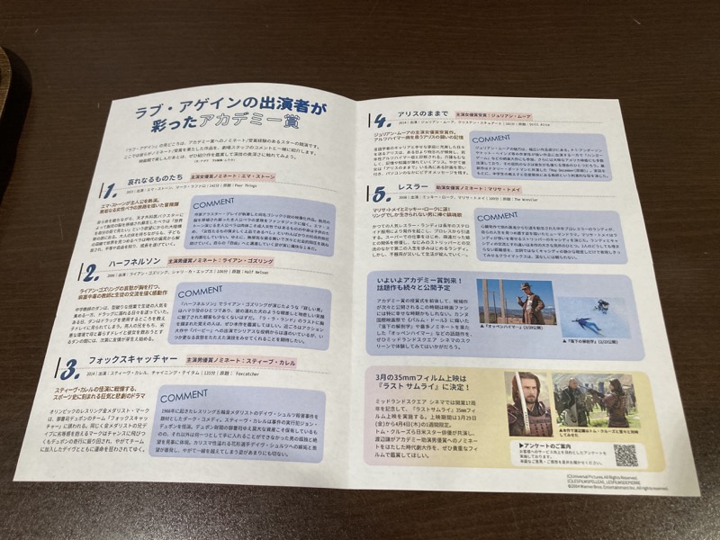 もぎりの際にこのリバイバル上映のフライヤーをもらえた。スタッフが僕に渡し忘れそうだったので、指摘した。
