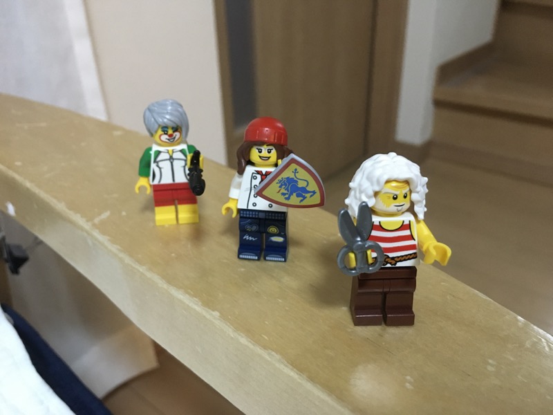 息子がショップで作ったミニフィギュア3つはこれ。