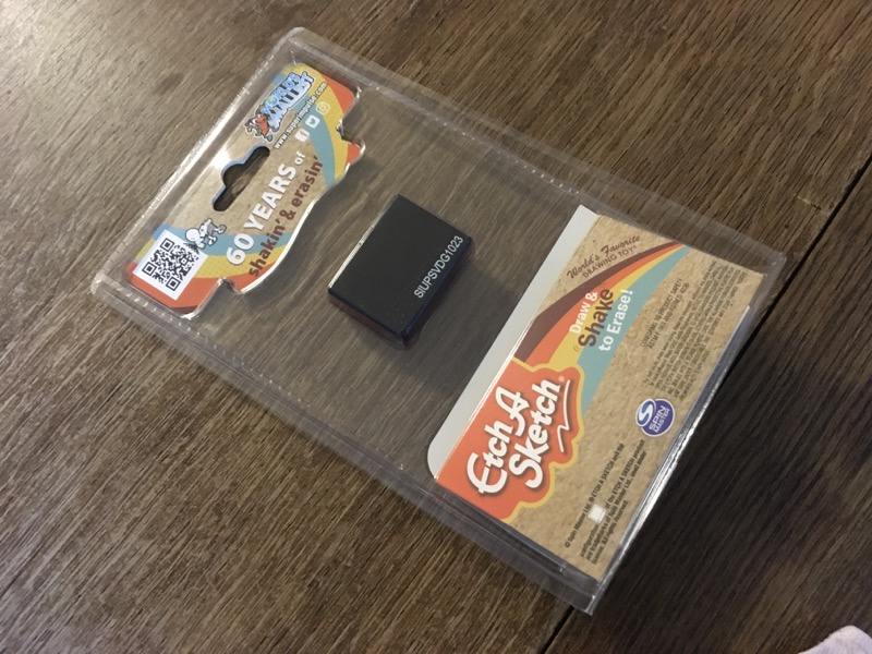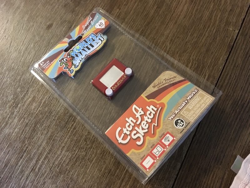 その中身。Etch A Sketch 以外にもいろいろなミニチュアのおもちゃを販売しているようだ。
