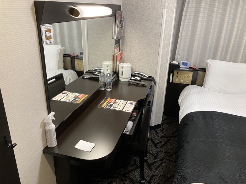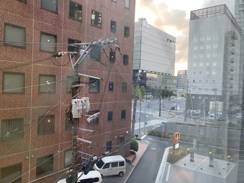 部屋は3階。部屋によっては新幹線が見えるらしいが、駅とは反対向きだしそもそも低い階で眺めも悪い。隣りのビルしか見えない。新幹線好きの息子は残念がっていた。