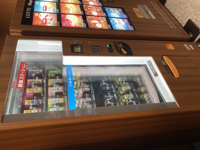 手前の自動販売機の牛乳が出てこなかった。右はアイスクリームの自動販売機。