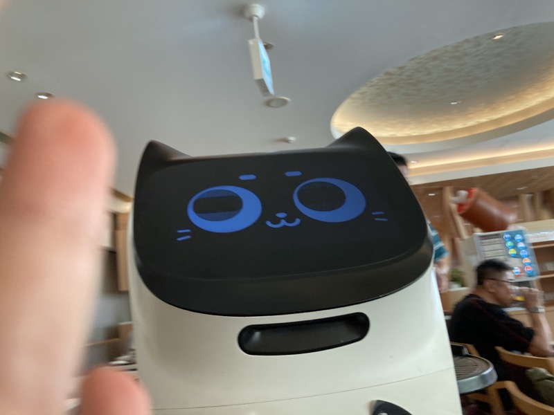 去年行った京都の朝食ビュッフェでもお皿の回収は猫型ロボットがやっていたが、ここも同じだった。