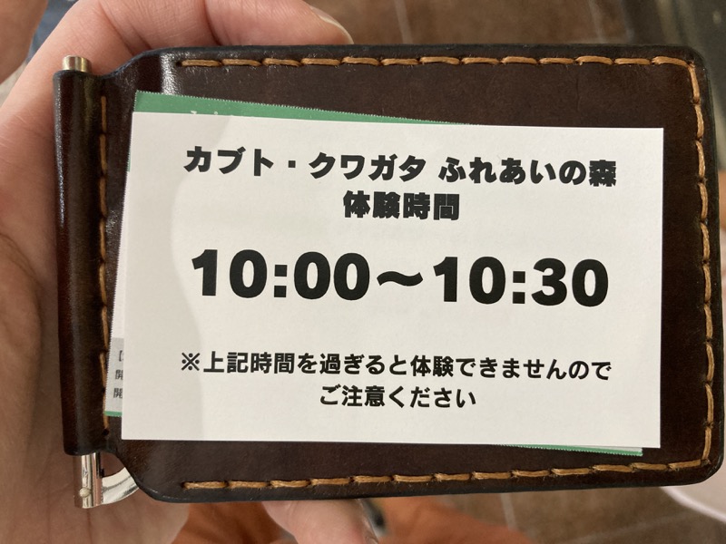 30 分間カブトムシやクワガタを触れ合える時間がある。入場者を分けて順番に入るようになっている。開場 30 分前には行き、早めに入口に並んだので、最初の回に割り振られた。