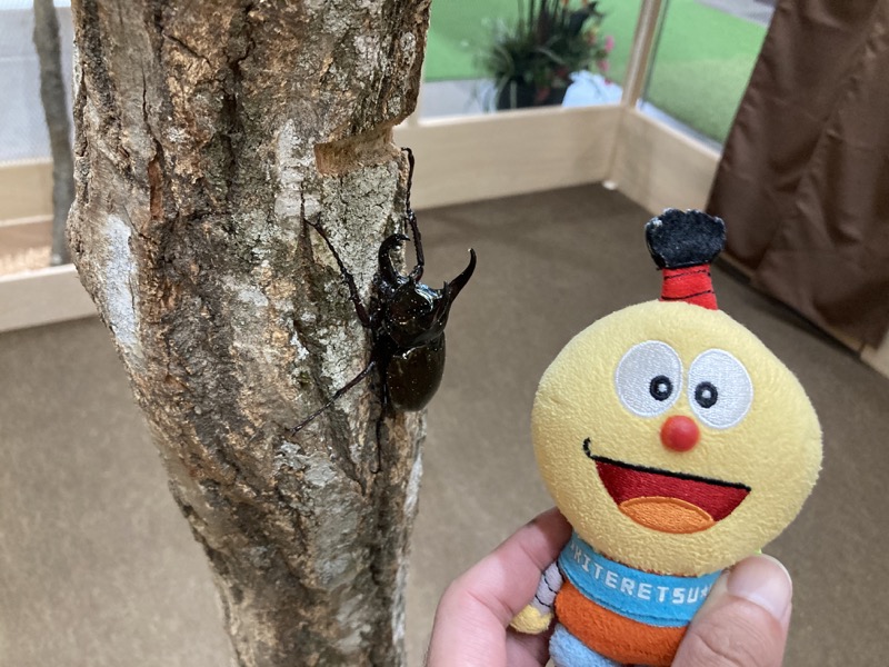 触れ合いは完全にネットで閉じられたスペースで行われた。木がたくさん並んでおり、そこに昆虫がいる。息子はたくさん手にとっていた。木のてっぺんあたりは子どもは届かないし、僕は虫はあまり触りたくないのでスタッフに取ってもらった。僕は虫は好きではないが、キラキラ新車のように光沢があるカブトムシなどはかっこいいと思った。