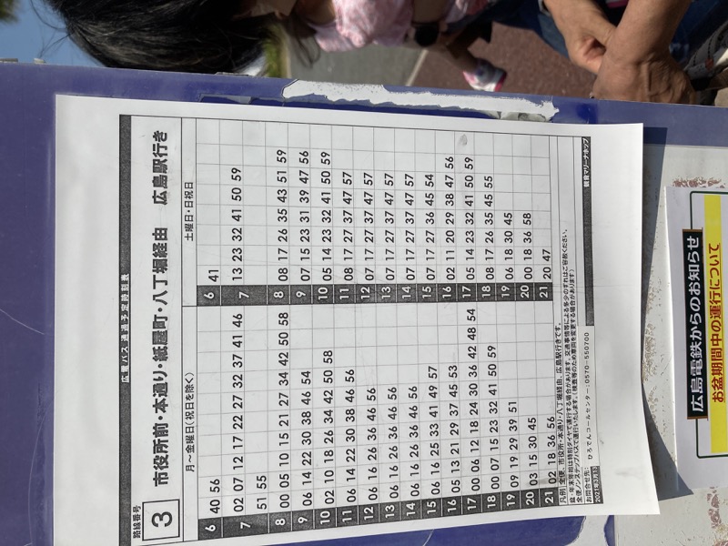 今回は JR 広島駅からバスで行った。40 分ほど掛かる。