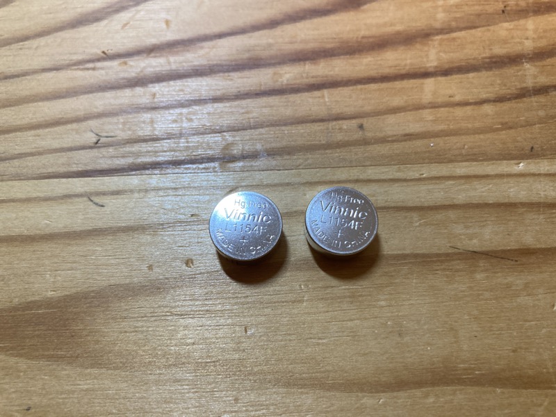 L1154F の電池が2つ入っていたが、新しい電池は LR44 を入れればいいようだ。