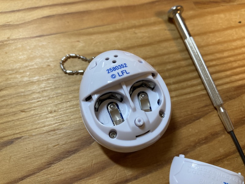 電池を外す方法に戸惑った。先が尖ったもので後ろの下中央の ‘へそ’ のようなところを押さえながら電池蓋を下にずらすと開いた。説明書にもネットにも電池交換方法が書かれていないんだもの。