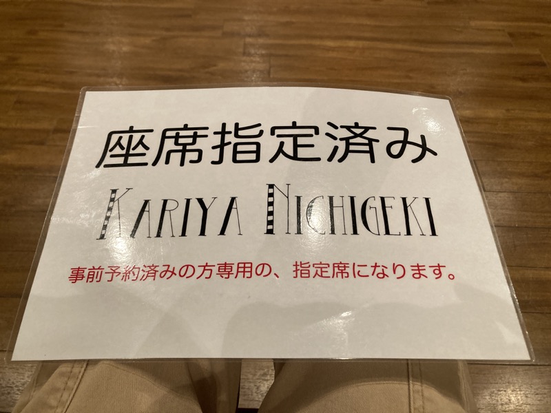 ネット予約したら指定席だが、当日購入の場合は自由席のようだ。僕の座席には指定席であることを示す A4 のカードが置かれていた(A4 用紙をラミネート加工されたもの)。そのカードの置き場に困っていたら、スタッフが上映開始前に回収に来た。