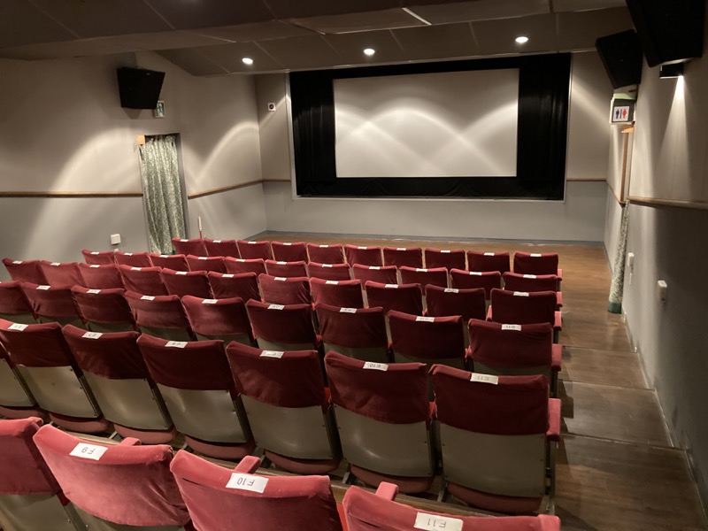 スクリーンは小さくやや上方にあるが、スクリーンと座席の間に広いスペースがあり、あまり見上げる必要はない。この広いスペースはイベントなどで使いやすそうだ。