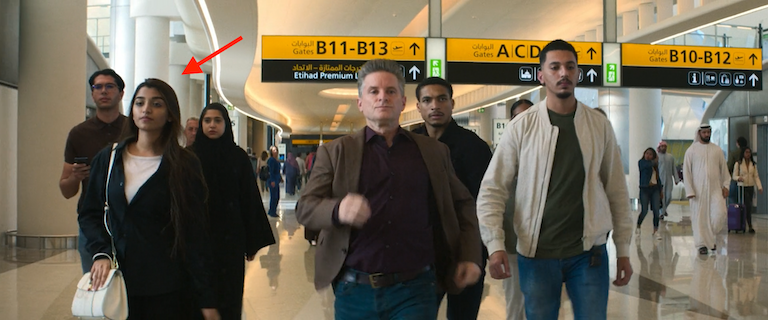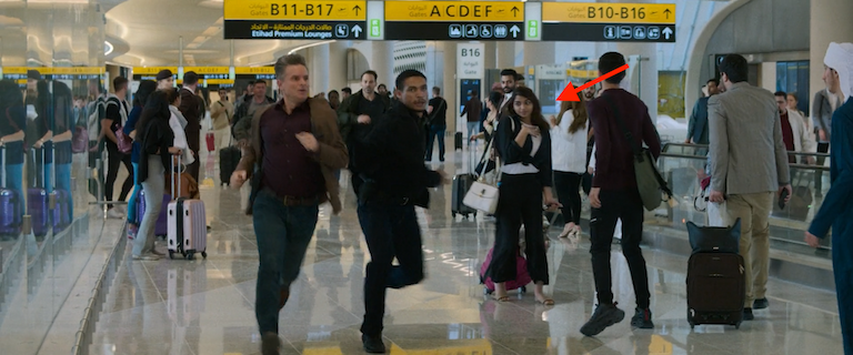 過去のレビューで指摘した空港で2度登場する女性のスクリーンショット。33:35 ごろと 47:19 ごろだ。