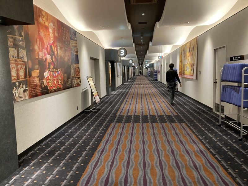 長い一つの廊下にずらーっとスクリーンが並んでいるのは珍しい。