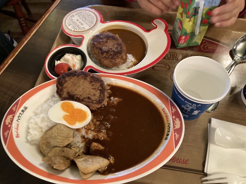 昼ご飯に食べた「ハングリーベア・レストラン」のカレーはなかなかおいしかった。ゆで卵の黄身がミッキーの形になっているが、どうやって作っているんだろう。