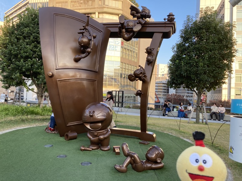 関東旅行で行くと決めていた場所の一つが、渋谷・宮下公園にある「ドラえもん みらいのとびら」というモニュメントだ。藤子・F・不二雄先生のキャラクターがモニュメントになっている。
