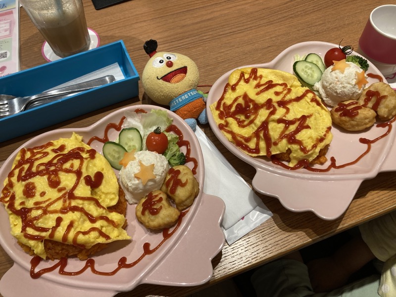 秋葉原駅本店にも行ったと伝えると、「おもちゃはもらった?」と聞かれた。そういえばキッズセットに付いているはずのおもちゃをもらっていない。渡し忘れたんだろう。だから、このお店でも代わりにもらえたが、100 円ショップで適当に買ってきたようなおもちゃばかりで微妙なものばかりだった(息子は飛行機をもらっていた)。もっとメイドカフェらしいグッズでもいいんじゃないかな。