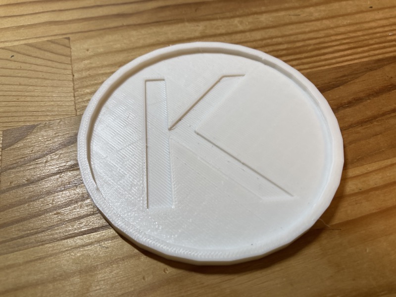 (3)2ですでにシンプルなコースターが完成しているが、せっかくだから「K」という文字を刻印することにした(コロ助の K だ)。