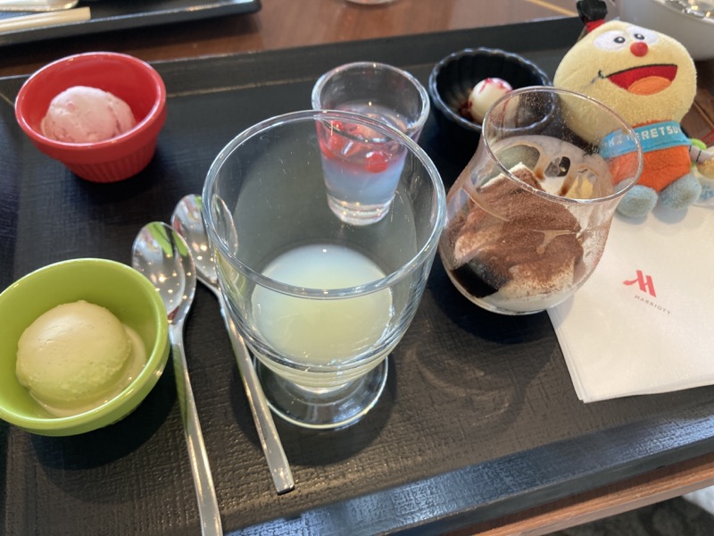 息子はアイスクリームが好きだが、小さいお皿にスタッフがちょこんと乗せるだけ。結局息子は4回食べていた。