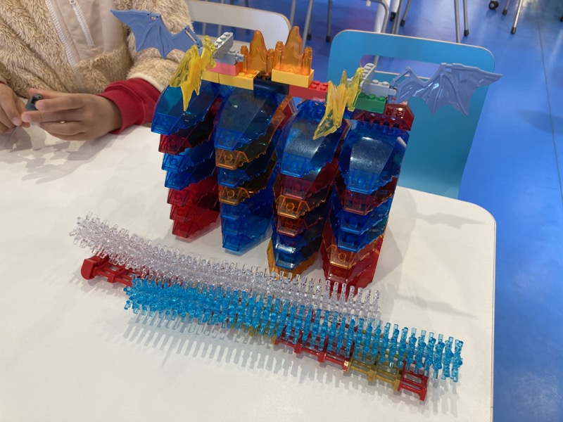 次に「リビルド・ザ・ワールド・センター」に行った。ここでは自由にレゴ作品を作れる。制限時間は 30 分。作品は持って帰れないが、店内に飾ってもらえる。最初僕はコロ助を作ろうとしたが、あまりいい材料が見つからず諦め、息子の手伝いをした。息子は同じパーツばかりを集めてそれを連結するだけの「謎の建造物」を作っていた。しかも巨大で、スタッフのおにいさんは驚いていた。他の人の作品を見ると、サッカーボールぐらいの大きさの、結構分かりやすい作品を作っている人が多かった。