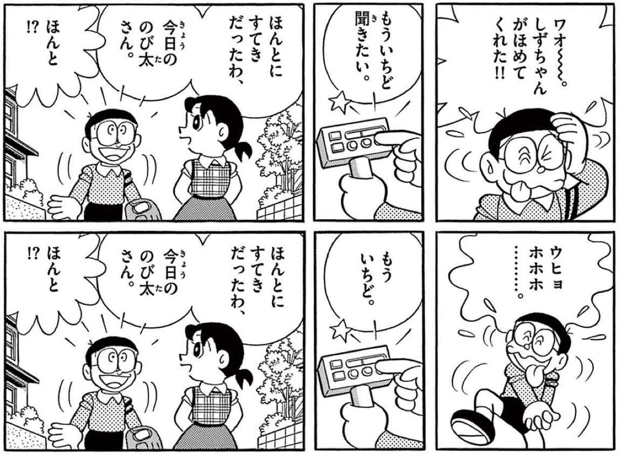 現在読んでいる『藤子・F・不二雄大全集 ドラえもん』第 12 巻の p603 で、この映画と同じようなシチュエーションがあった。しずかちゃんに褒められた言葉を、のび太が何度も巻き戻して繰り返している。