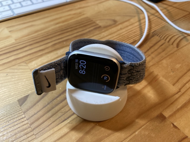 そこで Apple Watch と充電ケーブルを定位置でしっかり固定できる充電スタンドを Cults で見つけ、印刷した。