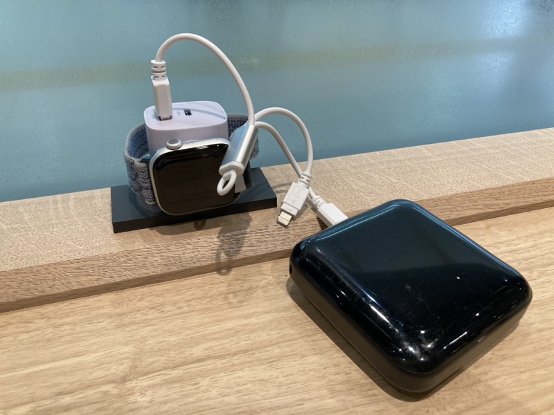 Apple Watch および、ポータブルバッテリーを同時に充電中。